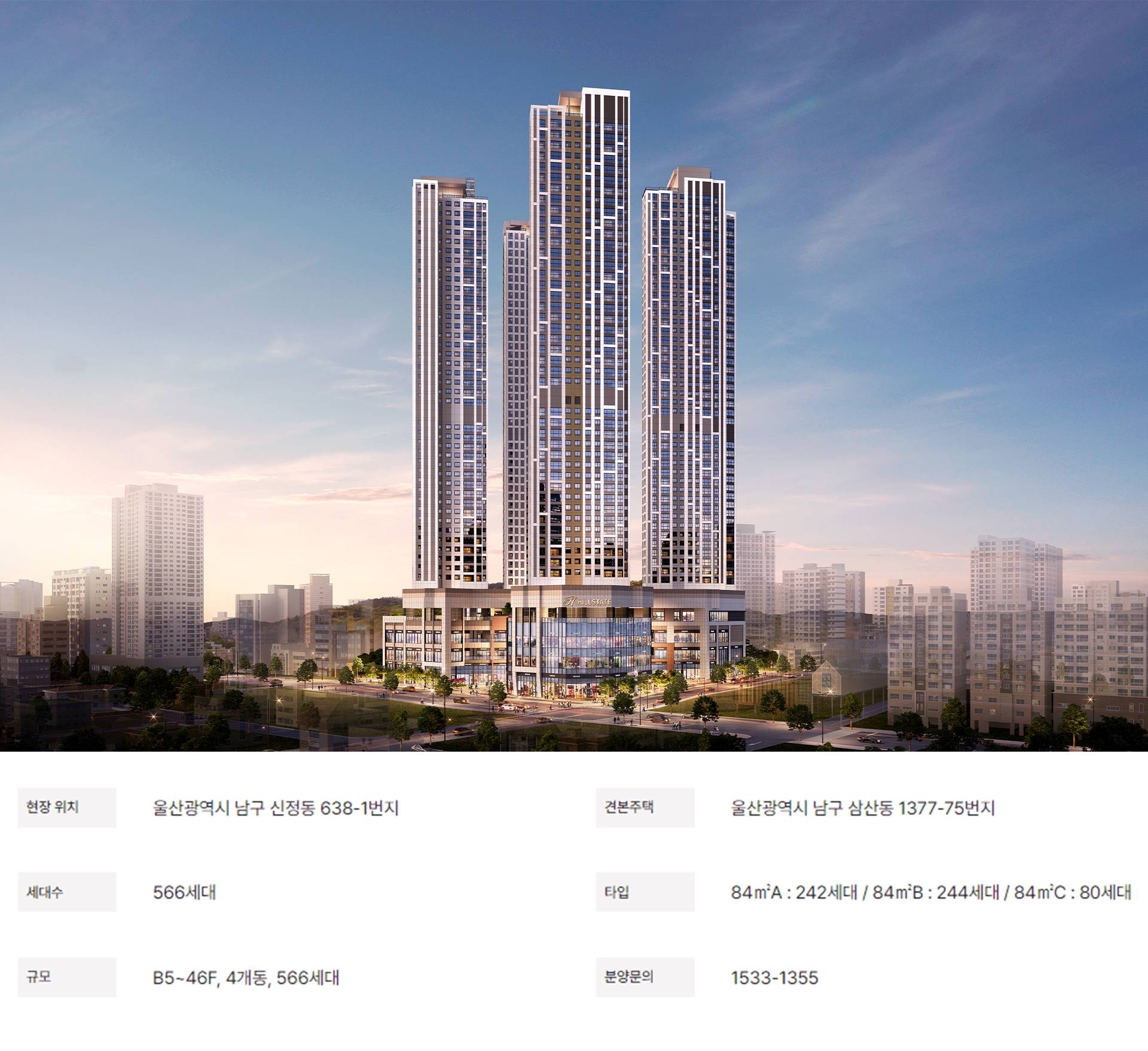 지상 최고 46층 높이로 건설되어 울산 도심을 한눈에 내려다보는 탁월한 조망과 웅장한 위상을 자랑합니다.